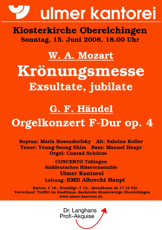 W. A. Mozart "Krönungsmesse" G. F. Händel Orgelkonzert W. A. Mozart "Exsultate, jubilate"
