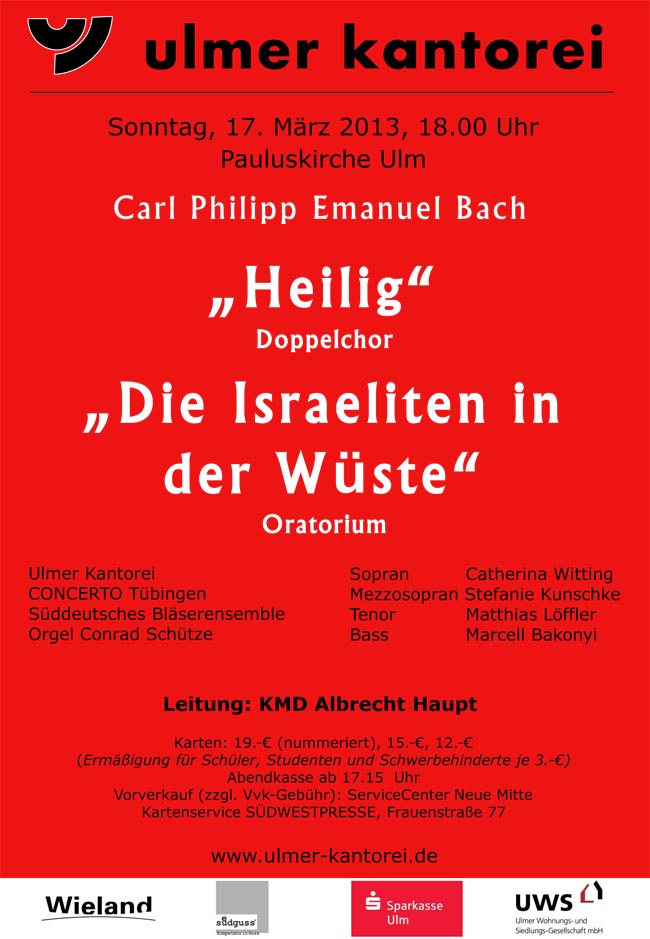 Albrecht Haupt präsentierte mit der Ulmer Kantorei "Die Israeliten in der Wüste" von Carl Philipp Emanuel Bach. Eine beachtliche Aufführung.